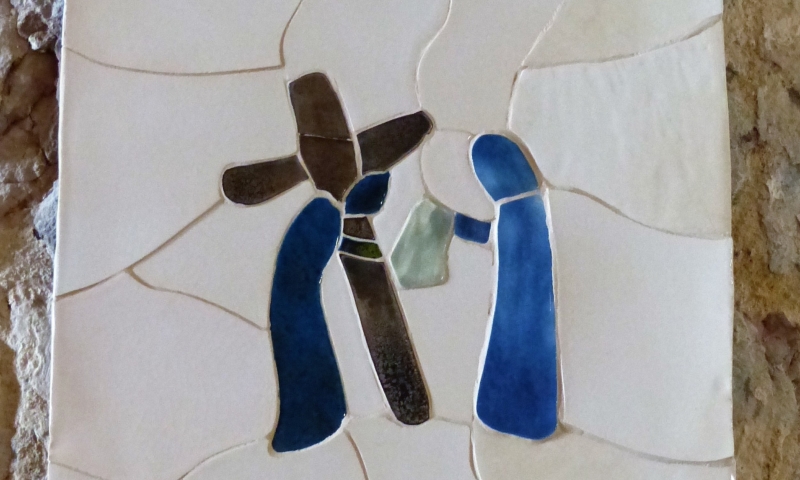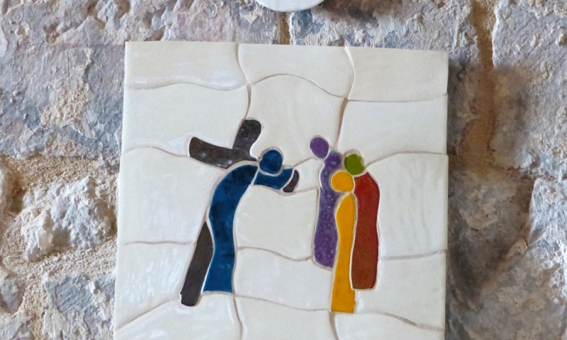Allez tout droit en direction de l’église, laissez le parking et le restaurant derrière vous.