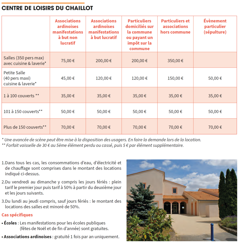 La salle du Chaillot est située rue de Vrigne-aux-Bois à côté du stade. Disposant d’un parking de 45 places, elle se compose de deux parties :